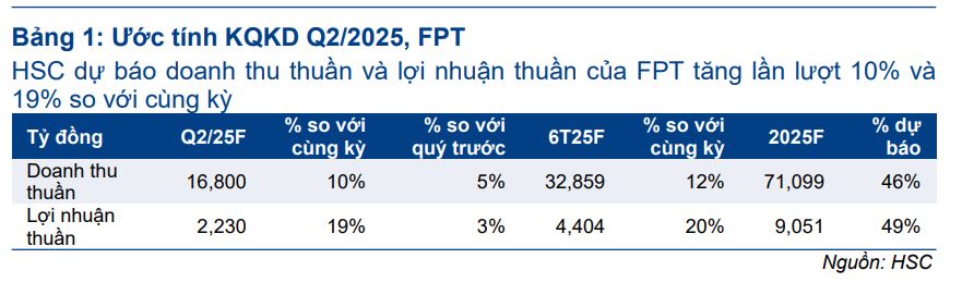 Dự báo kết quả kinh doanh FPT Quý 2/2025 từ HSC: Áp sát ngưỡng quen thuộc 20% yoy