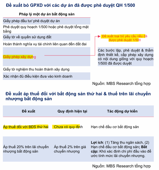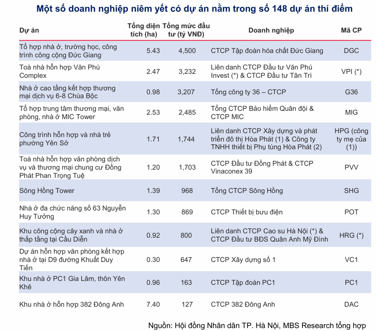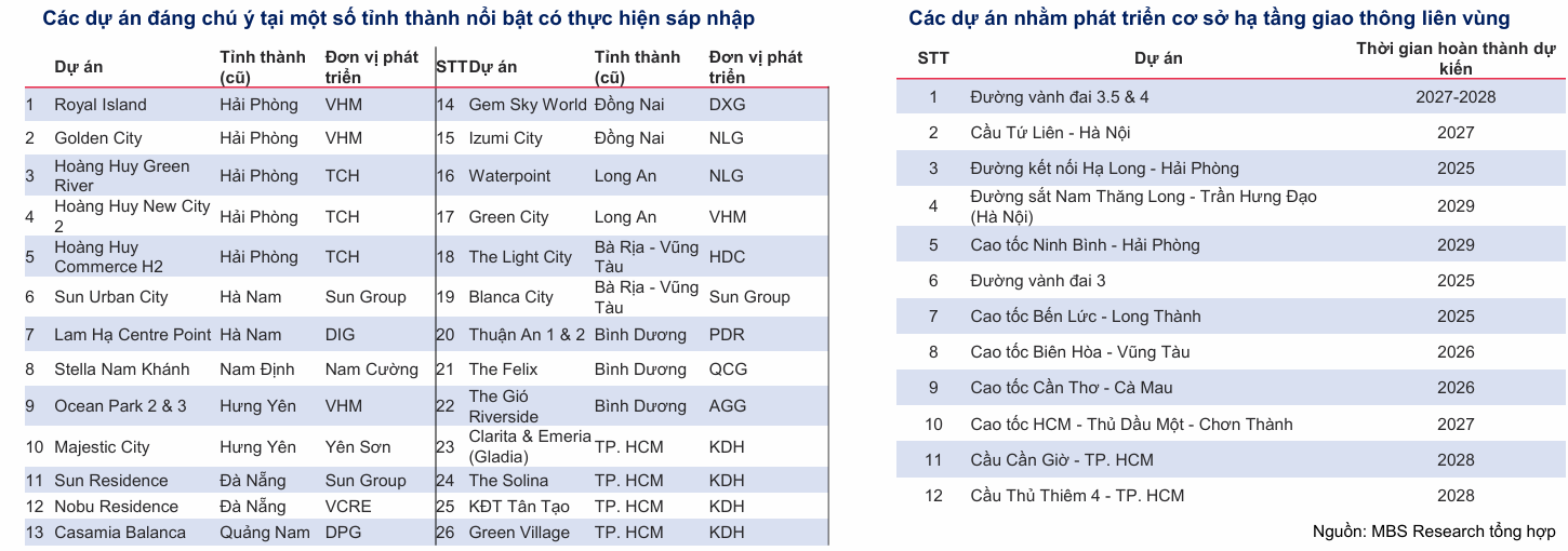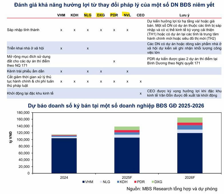 MBS cho rằng các doanh nghiệp có quỹ đất tại các khu vực được hưởng lợi từ thay đổi pháp lý và hạ tầng sẽ ghi nhận tỷ lệ hấp thụ tốt hơn tại các dự án đang và sắp phát triển, đồng thời giá bán cũng sẽ cải thiện.