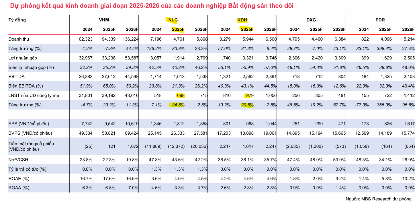 Theo đó, MBS lựa chọn NLG (Nam Long Group)- giá mục tiêu 45,600 đồng và KDH (Khang Điền House) – giá mục tiêu 39,100 đồng, cho chiến lược đầu tư nửa cuối năm 2025.