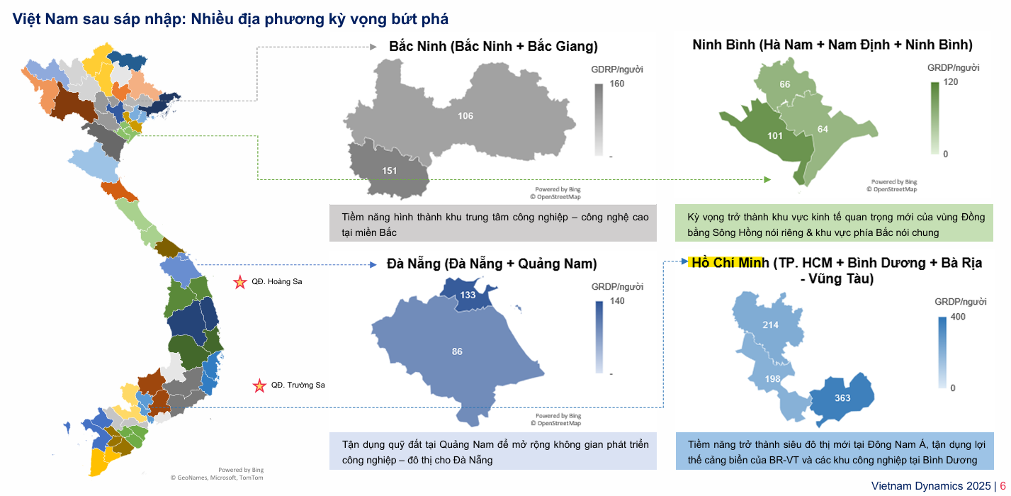 Việc sáp nhập tỉnh thành, như ví dụ Hà Tây sáp nhập vào Hà Nội năm 2008, có thể tạo ra cơn “sốt” giá trong ngắn hạn. Tuy nhiên, MBS lưu ý rằng xu hướng tăng giá chỉ bền vững khi những tác động kinh tế và hạ tầng thực sự rõ ràng.