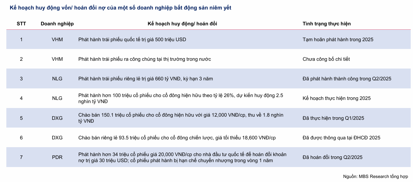 Về kênh huy động vốn, MBS ghi nhận xu hướng đa dạng hóa nguồn vốn của các doanh nghiệp bất động sản: