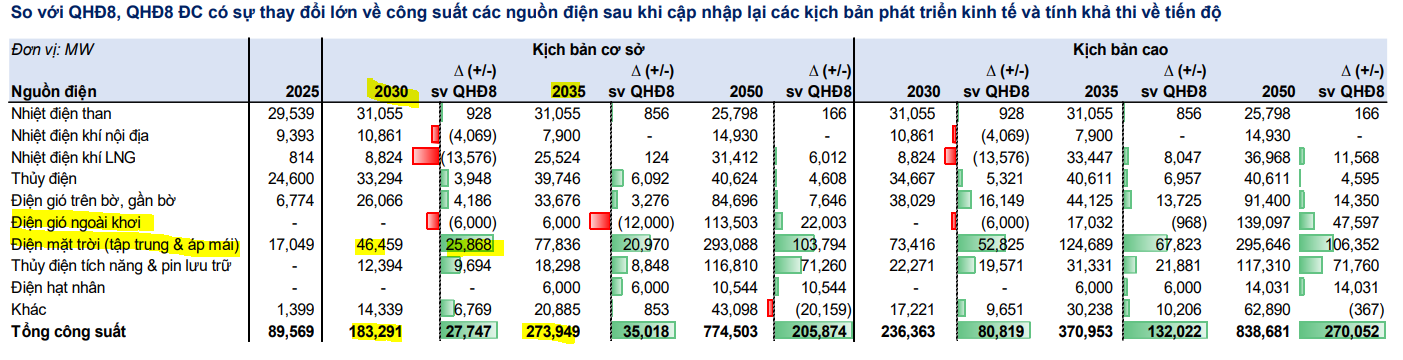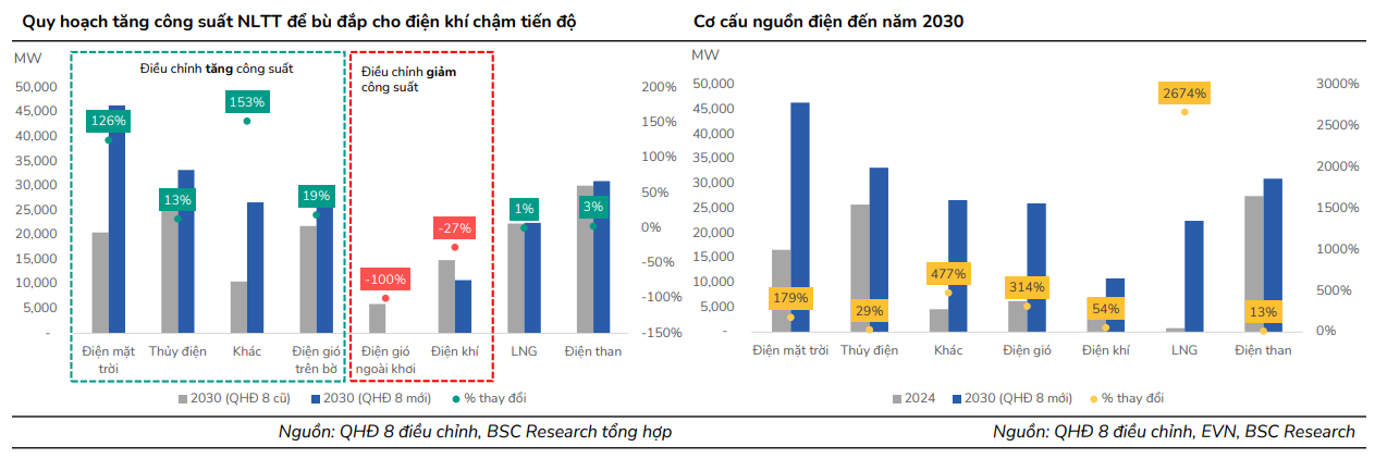 MBS đánh giá rằng QHĐ8 điều chỉnh đã có sự thay đổi lớn về công suất các nguồn điện, phản ánh các kịch bản phát triển kinh tế và tính khả thi về tiến độ.