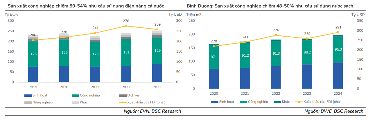 - Rủi ro: Nếu Mỹ áp thuế cao, hoạt động khu vực FDI chững lại có thể làm giảm nhu cầu điện – nước sạch.