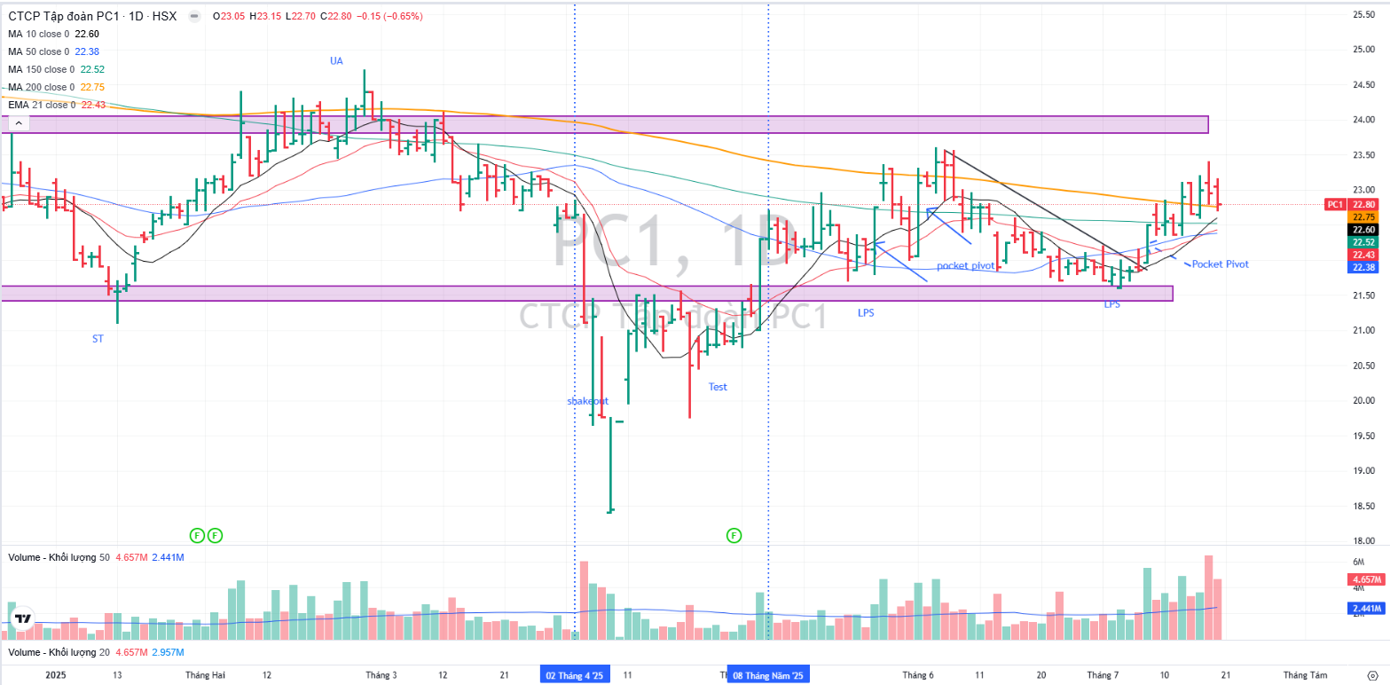 PC1 vẫn đang trong giai đoạn xây nền giá quanh MA200 ngày, do đó cần chờ đợi điểm mua hợp lý.