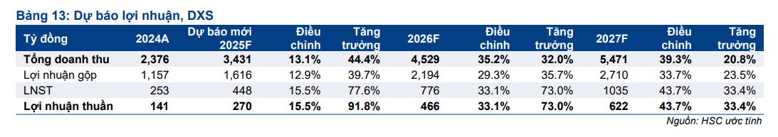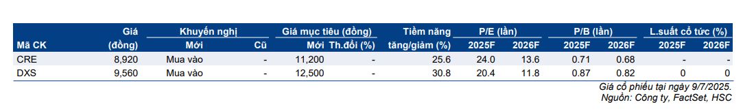 HSC 21.7.2025) đã nâng giá mục tiêu đối với DXS từ 7,600 đồng lên 11,200 đồng, và khuyến nghị MUA. Lưu ý thị giá hiện tại là 11,500 đồng, nghĩa là DXS đang được định giá hợp lý.