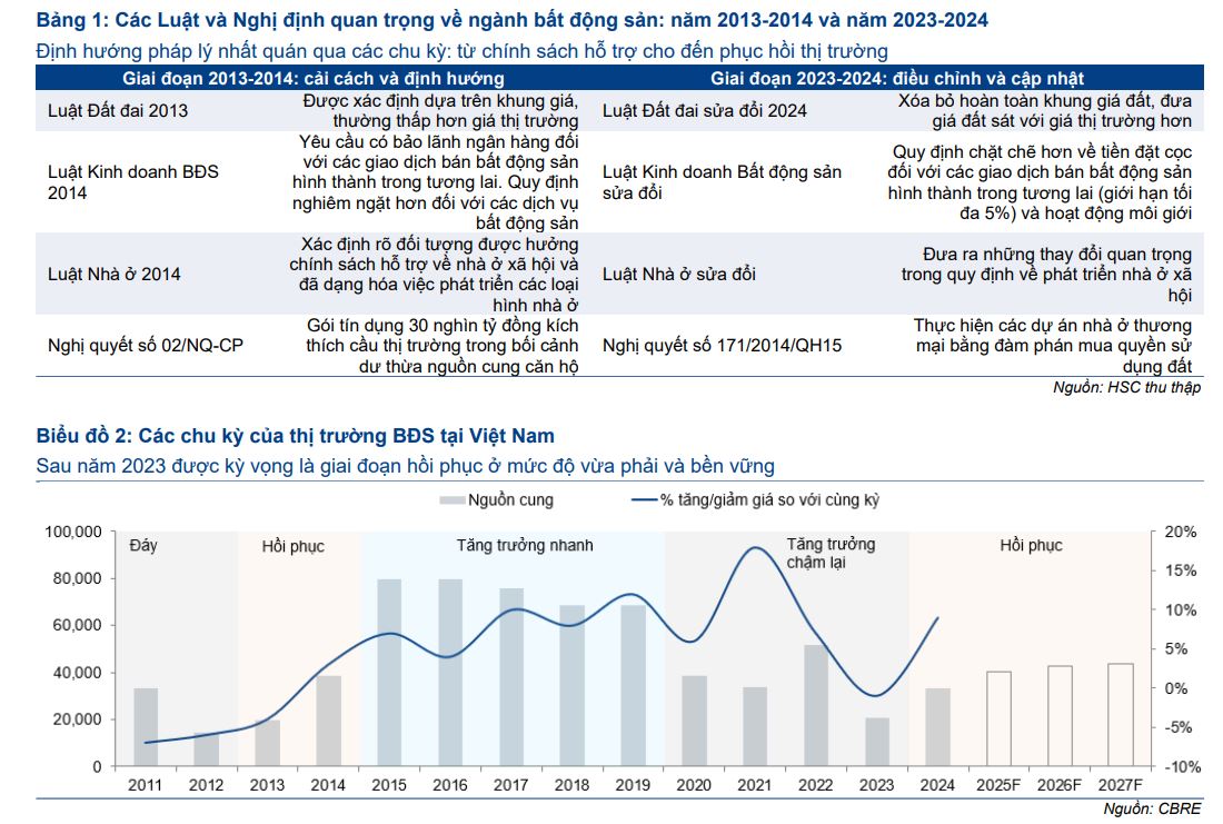 Các nghị quyết gần đây của Chính phủ, đặc biệt là Nghị quyết 206 (cơ chế đặc biệt giải quyết rào cản pháp lý) và Nghị quyết số 171 của Quốc hội (giải quyết nút thắt thu hồi đất cho nhà ở thương mại), đánh dấu một bước ngoặt quan trọng cho thị trường BĐS. Sự minh bạch về mặt pháp lý được cải thiện, chấm dứt một chu kỳ suy thoái kéo dài và giúp khôi phục tâm lý người mua nhà.