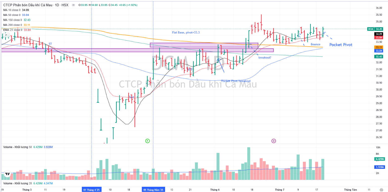 Ngày 21.7.2025, DCM có điểm mua Pocket Pivot