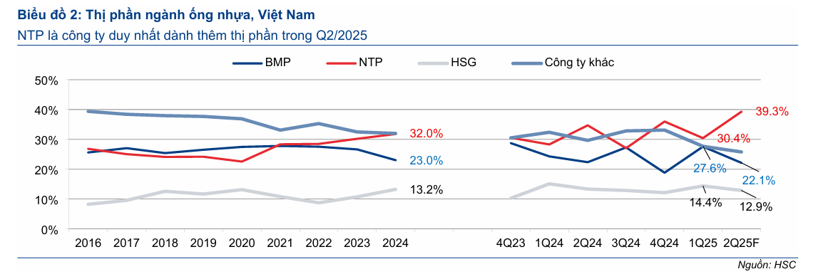 | Thị phần | Giảm xuống 22.1% trong Q2/2025 (do NTP tăng trưởng vượt trội) | n.a |