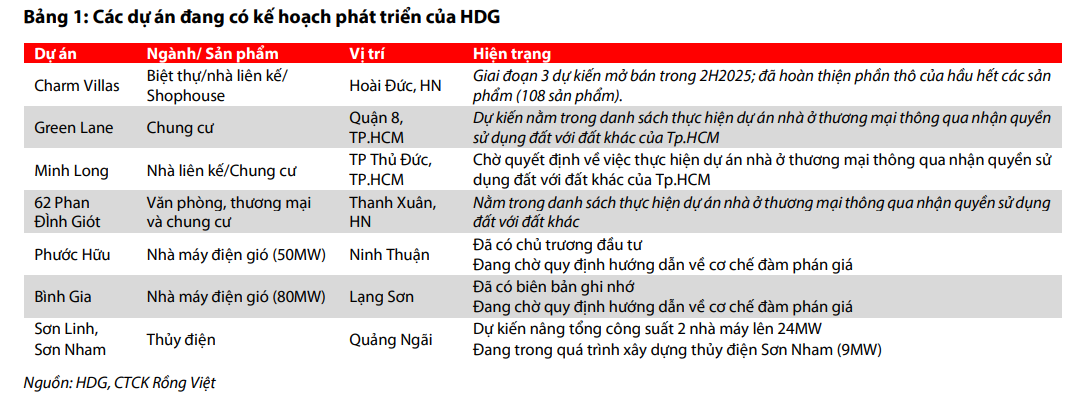 VDSC kỳ vọng kết quả kinh doanh năm 2025 của HDG sẽ tương đối tích cực so với mức nền thấp năm 2024.