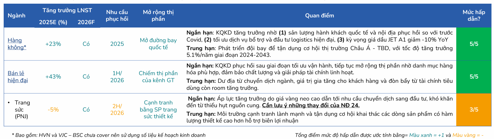 Tương tự, BSC cho rằng ngành bán lẻ sẽ viết tiếp câu chuyện tăng trưởng nhờ thúc đẩy du lịch, giảm thuế VAT, sửa luật thuế thu nhập cá nhân (Quốc Hội xem xét vào tháng 10) và các chính sách luật tạo ra môi trường cạnh tranh lành mạnh hơn.