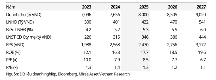 | Dự phóng Doanh thu 2025F | 8,000 tỷ đồng (+4.5% yoy) | |