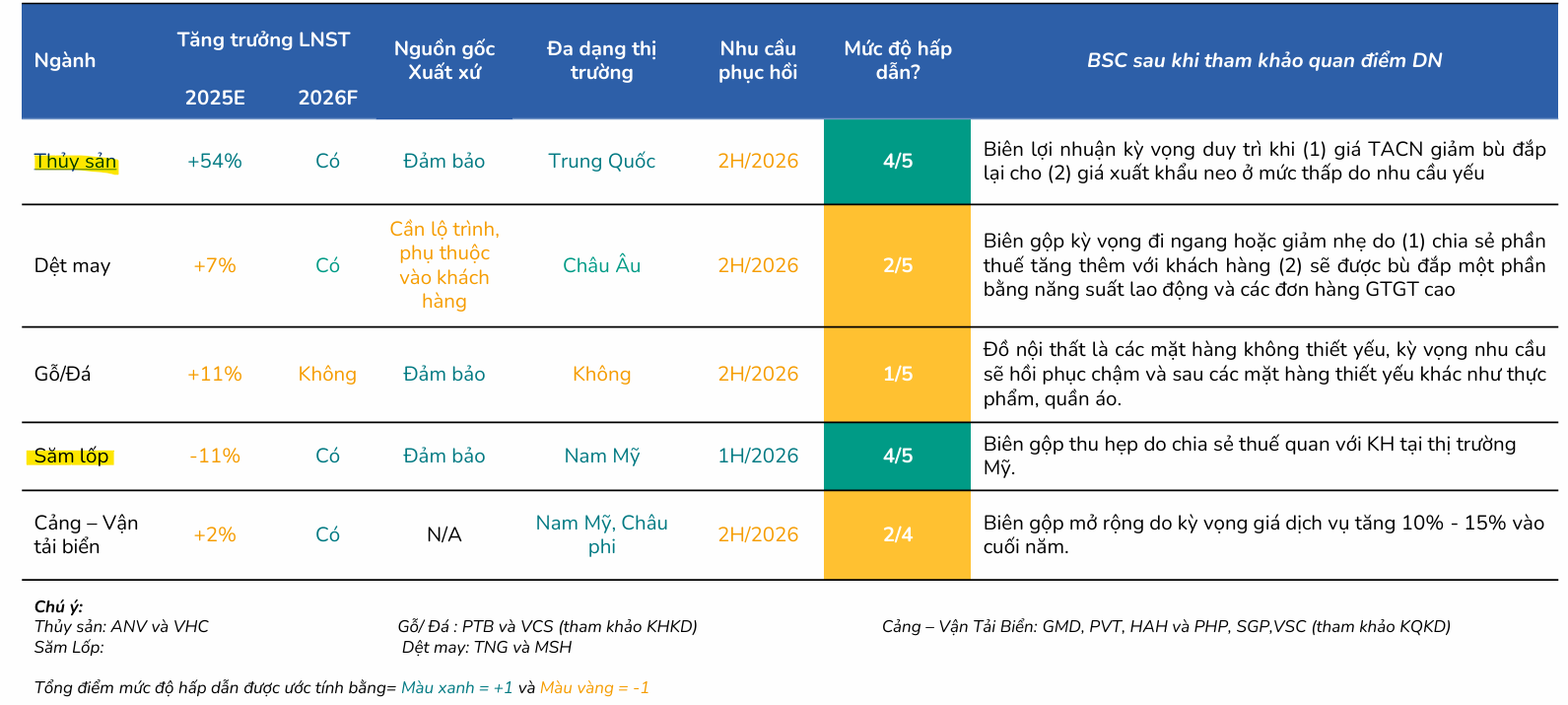 | Điểm nhấn vĩ mô/ngành | Thuế quan đối ứng của Mỹ thuận lợi hơn đối thủ, ổn định chính sách,