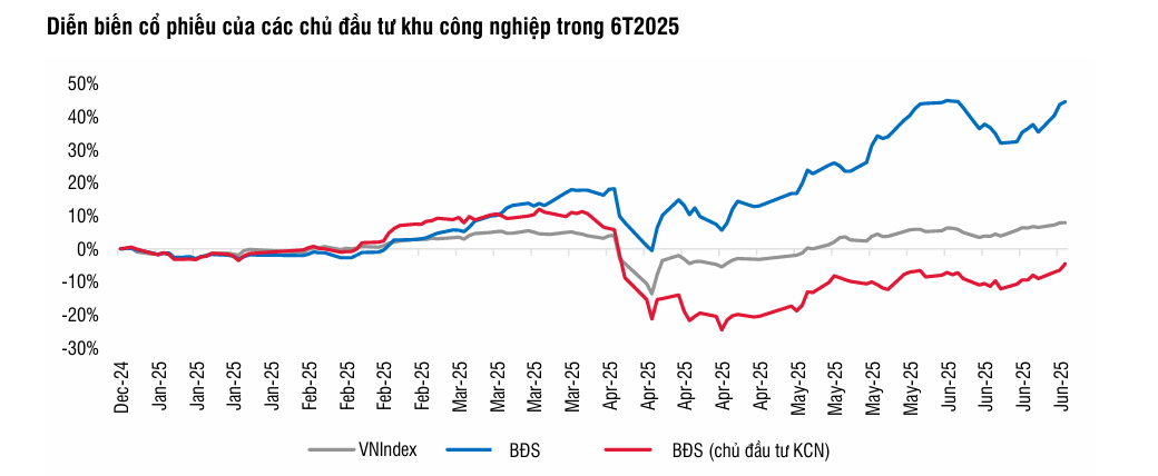 Ngành bất động sản khu công nghiệp (BĐS KCN) có hiệu suất kém hơn VN-Index sau diễn biến thuế quan. Triển vọng ngành này phụ thuộc vào kết quả đàm phán thuế quan với Mỹ.