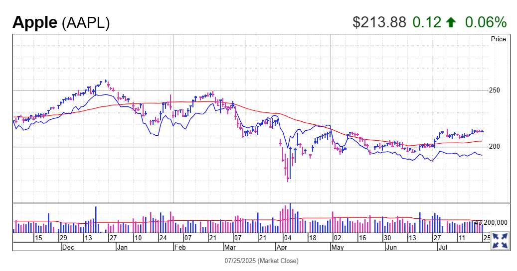 Trên thị trường chứng khoán ngày hôm nay , cổ phiếu Apple tăng một chút và đóng cửa ở mức 213.88.