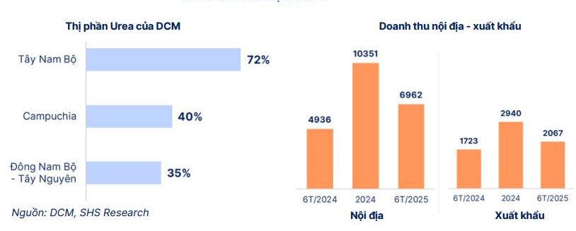 Tây Nam Bộ: chiếm 72% thị phần, Campuchia: khoảng 40% thị phần ure, Đông Nam Bộ – Tây Nguyên: khoảng 35% thị phần.