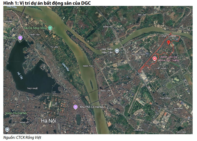 Về dự án bất động sản Đức Giang Residence (Long Biên, Hà Nội), từ tháng 5/2025, DGC đã tăng gấp đôi vốn điều lệ (từ 500 tỷ đồng lên 1,000 tỷ đồng) cho công ty TNHH Bất động sản Đức Giang. Dự án này được miễn giấy phép xây dựng và kỳ vọng sẽ có chủ trương đầu tư trong cuối năm nay. Về quy mô, dự án này được triển khai trên khu đất rộng 54,312 m2 (mật độ xây dựng 37.6%), bao gồm 60 căn nhà phố liền kề & biệt thự, ba tòa chung cư cao (21 tầng cung cấp tổng cộng 831 căn hộ), cùng trường Trung học Phổ thông Đức Giang trên diện tích 11,377 m2. Với lượng tiền gửi ngân hàng hơn 12 nghìn tỷ đồng tính đến cuối quý 2/25, DGC có đủ nguồn lực tài chính để triển khai dự án; kỳ vọng doanh nghiệp sẽ tiến hành các bước đầu tư từ 2026 (sau khi có chủ trương đầu tư), và đóng góp về lợi nhuận trong dài hạn của doanh nghiệp.
