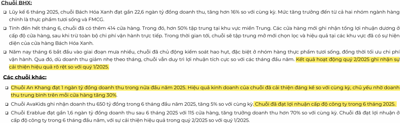 BHX đã có lãi ở cấp công ty; mỗi điểm % biên tăng của BHX đóng góp trực tiếp cho PATMI, giúp MWG vượt mục tiêu lợi nhuận sớm hơn dự báo.