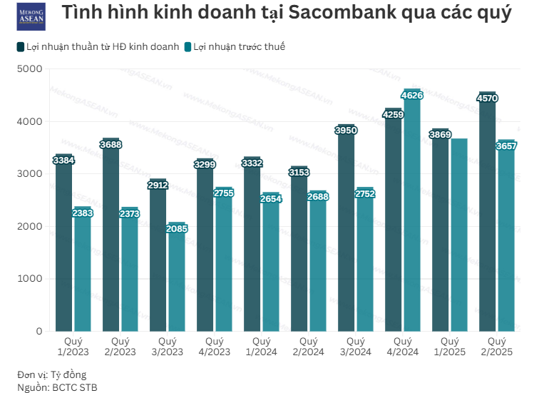 => Kết quả này vượt nhẹ kịch bản thận trọng của MBS (ước LNST ~2.6 nghìn tỷ) và VCBS (LNTT 3,355 tỷ) nhưng không chạm kịch bản “hoàn nhập lớn” của SSI (LNST 4,500 tỷ). Chênh lệch đến từ giả định của SSI rằng Sacombank sẽ hoàn nhập một phần lớn dự phòng ngay trong quý – điều đã chưa xảy ra.