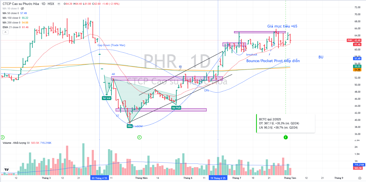 Khả năng phải chờ đợi PHR thoái lùi theo sự kiện BU về các mức chiết khấu hấp dẫn hơn để tham gia, ví dụ MA50 ngày quanh giá 57,000 đồng.