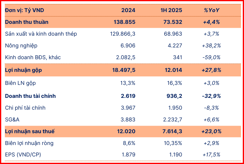 • Khoản lãi này hấp thụ một phần biến động giá thép, tạo dòng tiền nội bộ để duy trì capex mà không cần tăng nợ.