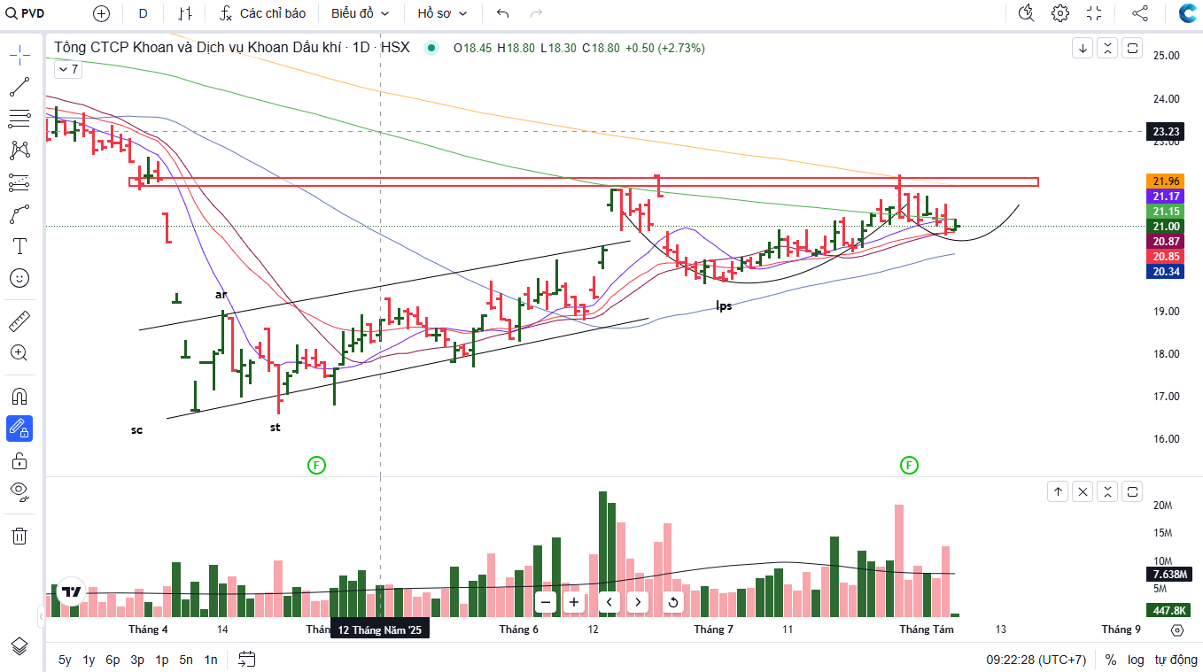 - Xét về kỹ thuật, PVD đang tích lũy ở khu vực tay cầm. Nếu có sự điều chỉnh, nó có thể là một lựa chọn tốt để đầu tư trung hạn.