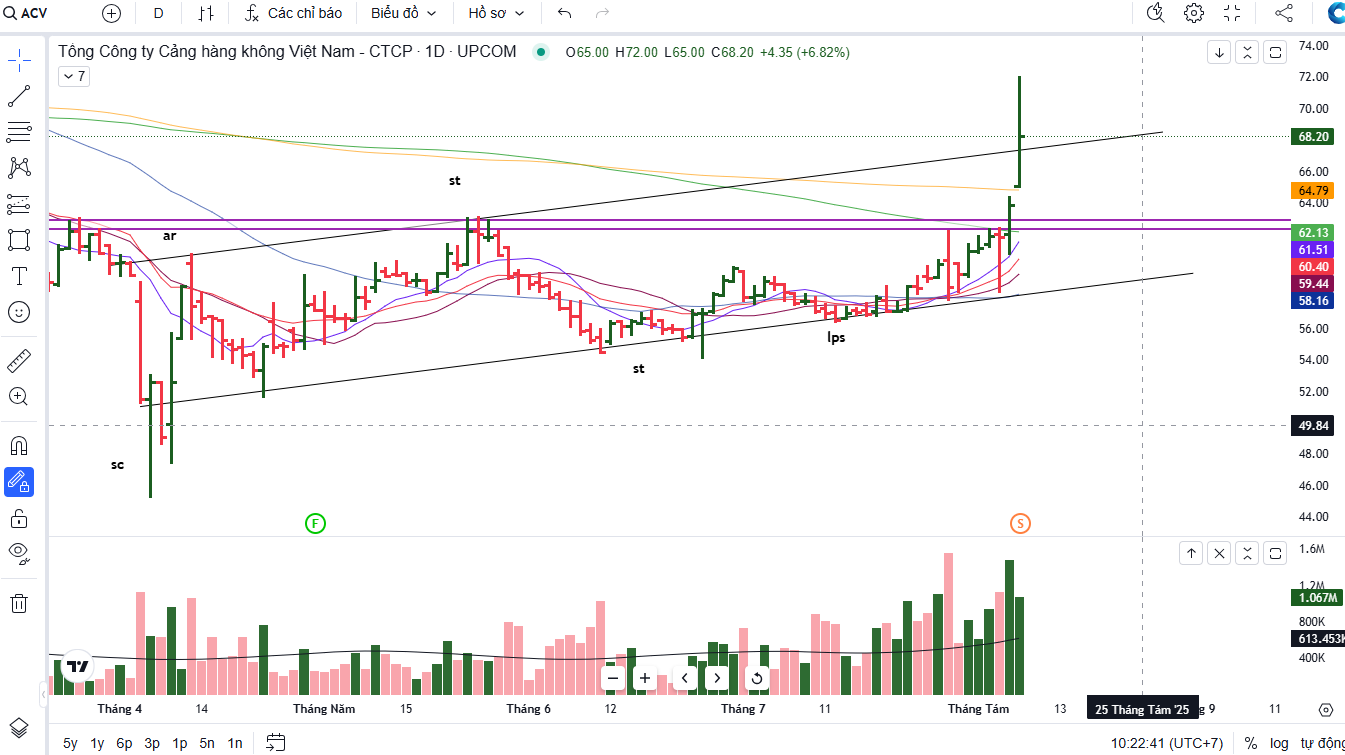 Trên đồ thị kỹ thuật, ACV có RS=53, hoạt động mức trung bình trên thị trường. Team không đánh giá cao nhóm hàng không (về mặt dài hạn). Chỉ có thể lướt sóng ngắn…