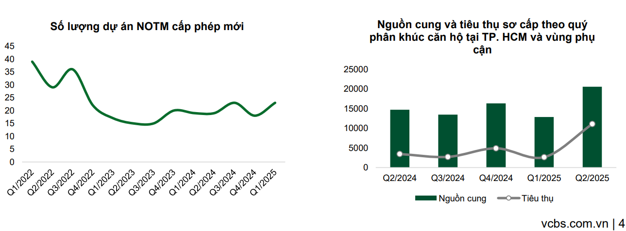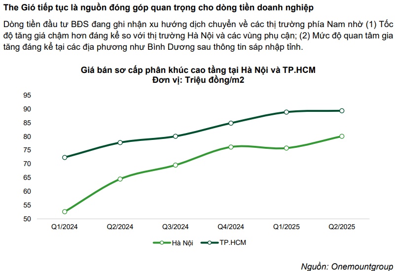 • Dòng vốn dịch chuyển về BĐS phía Nam: TP.HCM và vùng phụ cận có sức hấp thụ đang phục hồi nhanh hơn so với Hà Nội, đặc biệt ở phân khúc vừa túi tiền.