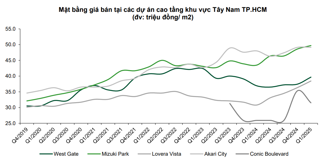 • Đặc điểm sản phẩm: Mức giá 40–45 triệu/m² nằm đúng phân khúc thiếu hụt, dễ hấp thụ ở thực, duy trì sell-through cao.