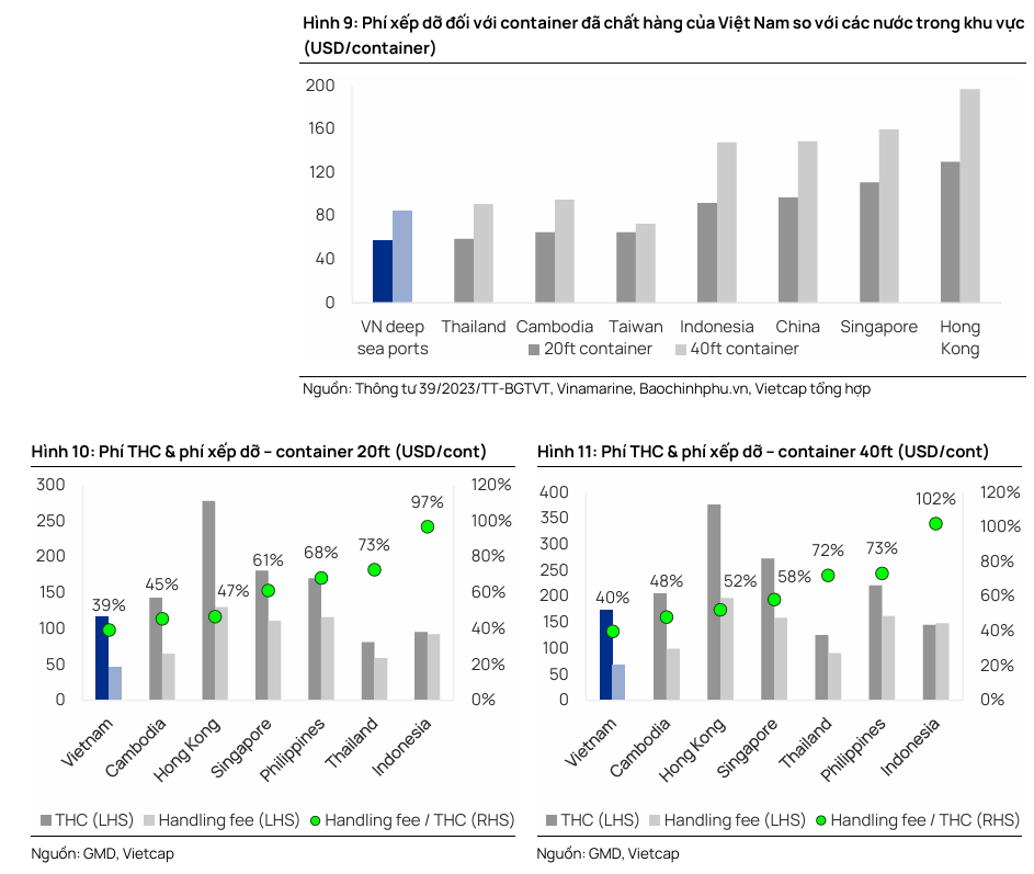 - Yếu tố hỗ trợ: Giống như HSC, Vietcap cũng nhấn mạnh khả năng tăng phí xếp dỡ tại cảng nước sâu, dự kiến diễn ra vào quý 4/2025.