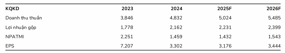 - Điều chỉnh dự báo: Vietcap điều chỉnh tăng dự báo LNTT sau lợi ích CĐTS cốt lõi giai đoạn 2026-2029 nhưng lại giảm 3% cho năm 2025 do lợi nhuận gộp từ mảng logistics thấp hơn dự kiến trong nửa đầu năm.