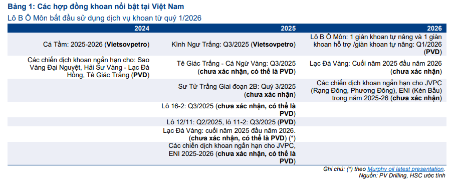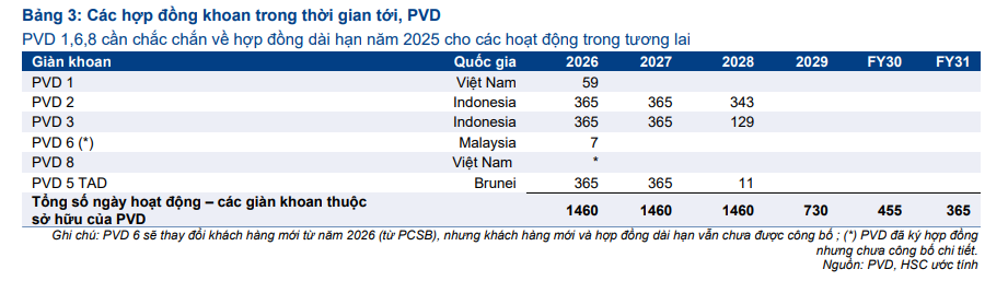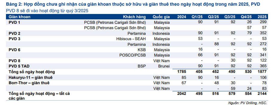 Việc đưa vào vận hành PVD 8 từ tháng 9 tới nhằm chuẩn bị cho dịch vụ khoan của Lô B- Ô Môn từ quý 1.2026. Hiện tại, PVD vẫn còn số ngày khoan chưa ghi nhận trong năm 2025 khá lớn.