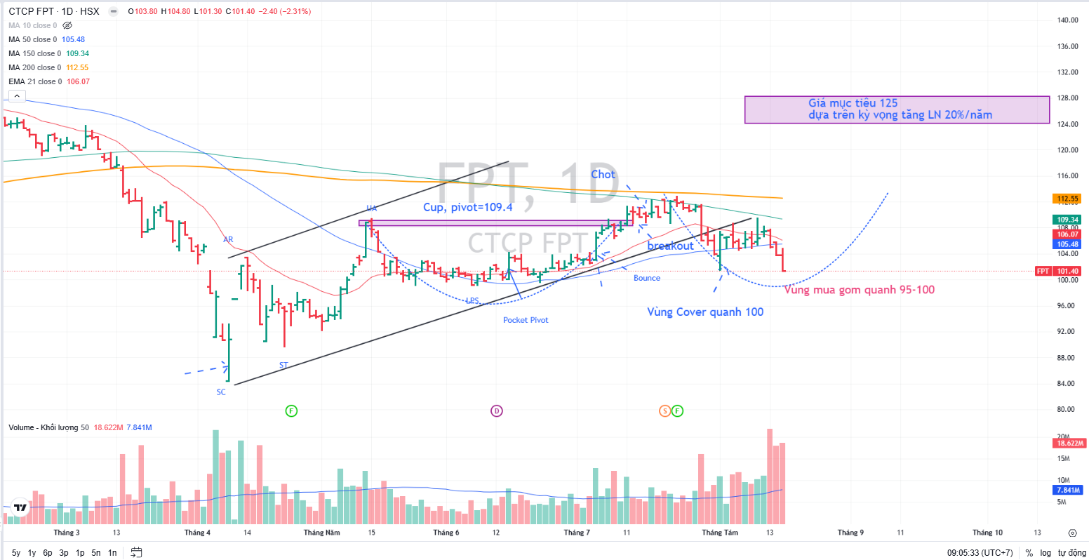 Elibook Team vẫn tin tưởng về khả năng FPT duy trì được lợi thế cạnh tranh và trở lại con số tăng trưởng lợi nhuận 20% vào năm 2026. Nhà đầu tư có thể canh mua gom cổ phiếu FPT ở vùng giá 95-100, với kỳ vọng giá mục tiêu 120-125,000.