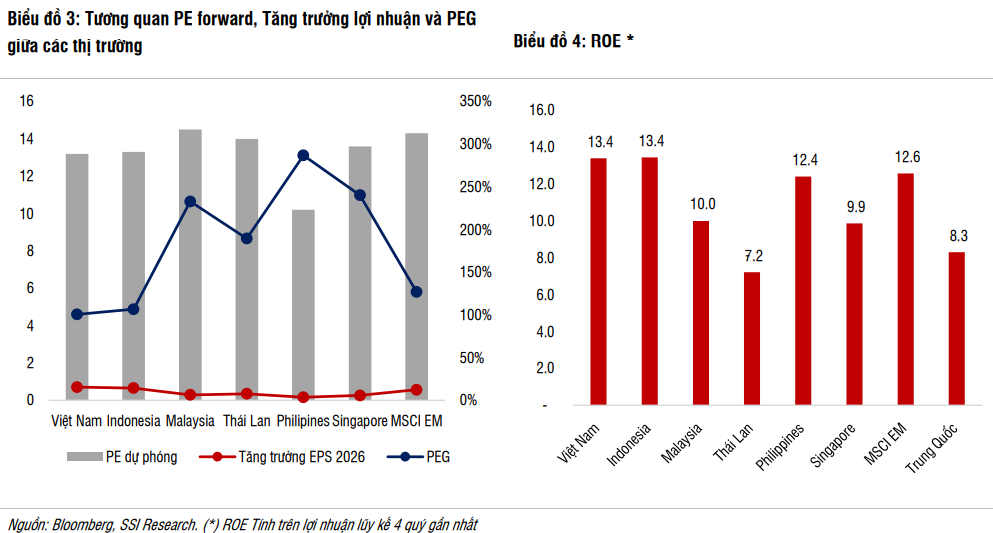 => Nếu mảnh ghép nâng hạng hoàn tất, câu chuyện “định giá lại” sẽ còn dư địa, nhất là khi lợi nhuận doanh nghiệp quý 2 tăng mạnh hơn quý 1 và dự phóng cả năm duy trì hai chữ số. Quan điểm chiến lược trung hạn: mục tiêu 1,750–1,800 điểm năm 2026 vẫn có cơ sở.