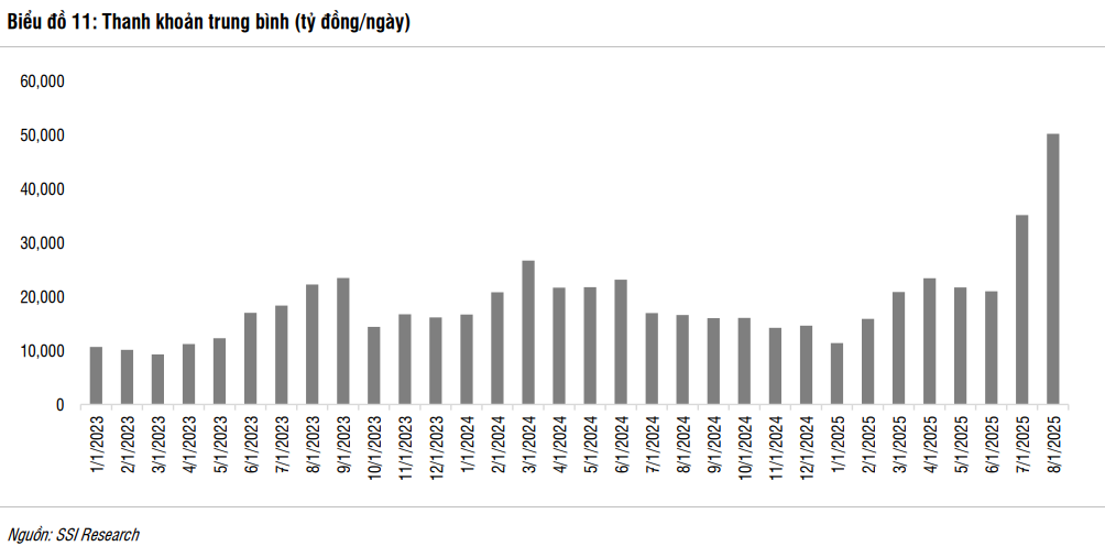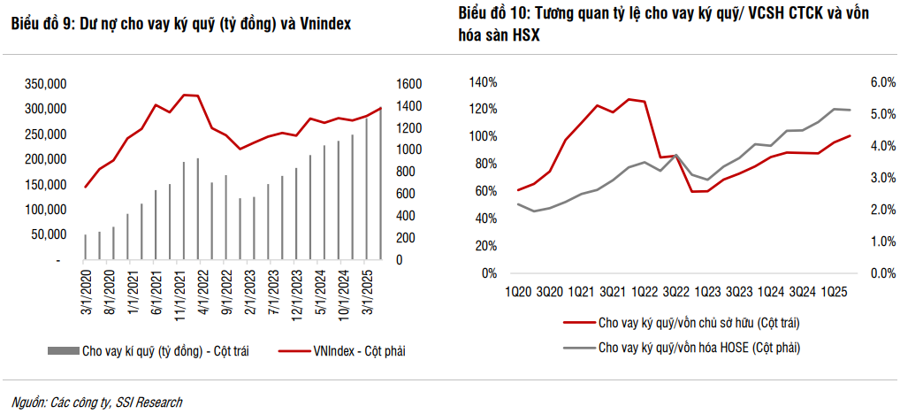 Có nghĩa là, kể cả khi thị trường “nóng tay” nhưng chưa đòn bẩy hóa tới mức đáng lo; rủi ro lớn hơn nằm ở nhịp phân hóa và tâm lý “đuổi giá” sau tăng nhanh.