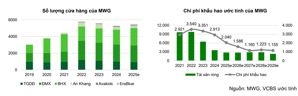 Chi phí khấu hao dự kiến giảm đáng kể từ năm 2025, với khoảng 800 cửa hàng sẽ hết khấu hao, giúp tiết kiệm 900 tỷ đồng.