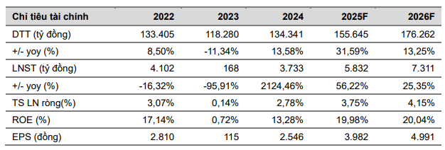 VCBS (12.8.2025) khuyến nghị MUA với giá mục tiêu 93,160 đồng/cp, dựa trên kỳ vọng tăng trưởng lợi nhuận sau thuế năm 2025 là 56.22% yoy, đạt 5,832 tỷ đồng.