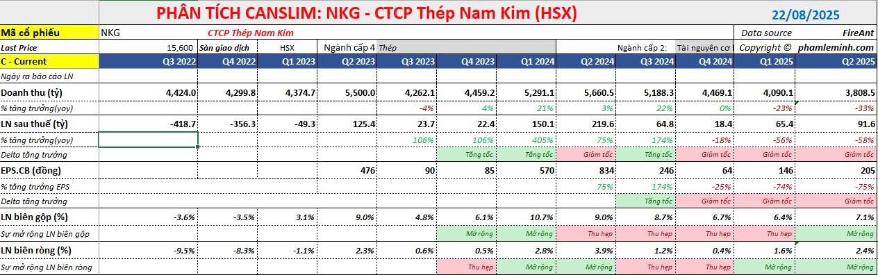 Trong quý II/2025, doanh thu thuần của NKG đạt 3,800 tỷ đồng, giảm 33%yoy. Sản lượng tiêu thụ giảm 27%, chủ yếu do xuất khẩu giảm tới 52%. Mặc dù tiêu thụ nội địa tăng 13% nhờ các biện pháp chống bán phá giá, nhưng mức tăng này không đủ để bù đắp cho sự sụt giảm ở thị trường quốc tế. Các thị trường xuất khẩu chính của NKG như Mỹ và châu Âu đang gặp phải rào cản thương mại và hạn ngạch, trong khi công ty chưa tìm được thị trường thay thế hiệu quả.