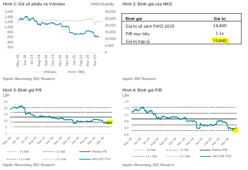 HSC nhận định rủi ro-lợi nhuận của NKG hiện tại không hấp dẫn, đặc biệt khi so với các đối thủ cùng ngành như HPG. Giá cổ phiếu tăng gần đây chủ yếu do dòng vốn đầu cơ và sự phục hồi của giá thép Trung Quốc, chứ không phản ánh sức khỏe từ hoạt động kinh doanh cốt lõi.