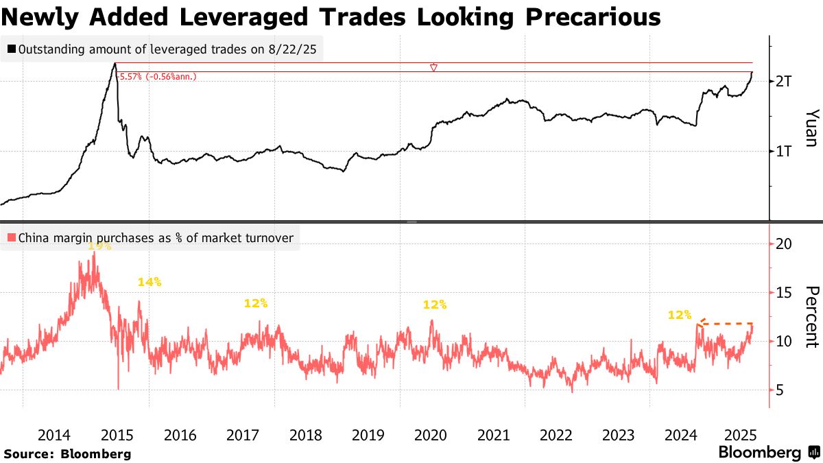 Trong khi một số nhà phân tích vẫn lạc quan về sức bền của đợt tăng giá, việc mở rộng nhanh chóng hoạt động mua cổ phiếu thông qua đòn bẩy margin có thể là một lý do đáng lo ngại khác. Tỷ lệ mua vào so với tổng giá trị giao dịch hàng ngày của thị trường đã nhiều lần đạt trên 11% trong những ngày gần đây và đang tiến gần đến mức cao nhất của tháng Mười.