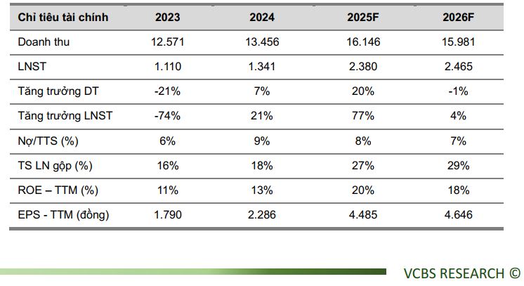 - Năm 2025: Lợi nhuận thuần dự báo đạt 2,291 tỷ đồng (tăng 55.4% so với cùng kỳ).