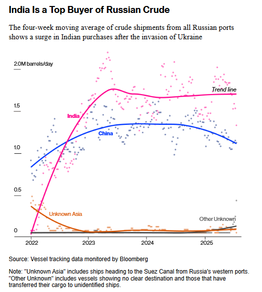 Quan hệ càng thêm căng thẳng sau khi ông Trump chỉ trích Ấn Độ vì tiếp tục mua dầu từ Nga. New Delhi cho rằng việc này giúp ổn định thị trường năng lượng, và khẳng định sẽ tiếp tục mua dầu Nga “tùy theo lợi ích tài chính.”
