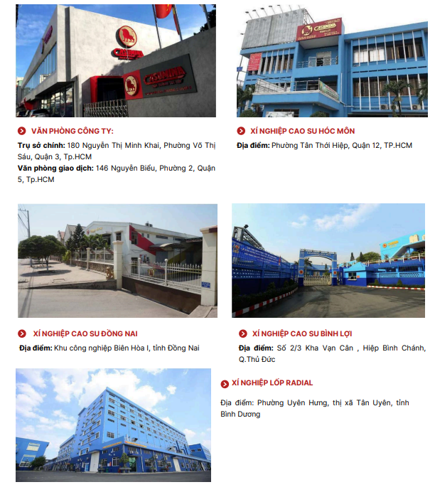 – Xí Nghiệp cao su Hóc Môn ở Phường Tân Thới Hiệp.- Xí Nghiệp lốp Radial ở Bình Dương.