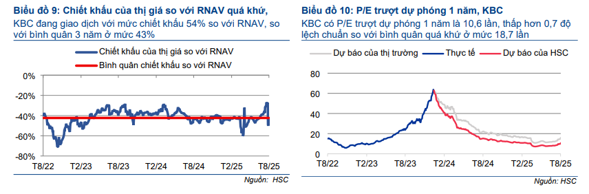 HSC (26.8.2025) duy trì khuyến nghị Mua vào đối với KBC, tăng 39% giá mục tiêu lên 46,000 đồng/cổ phiếu, với tiềm năng tăng giá 23% tại giá mục tiêu mới. HSC tin rằng quỹ đất dồi dào của KBC cùng với dòng vốn FDI đang đổ mạnh vào Việt Nam sẽ tạo ra cơ hội phát triển bền vững cho công ty.