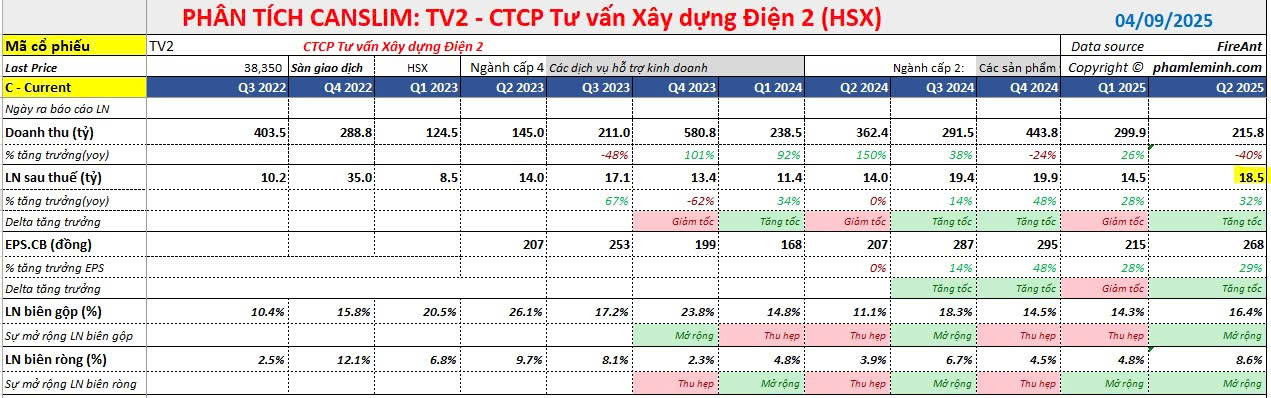 Trong quý 2/2025, TV2 ghi nhận doanh thu đạt 216 tỷ đồng (-40% so với cùng kỳ) và lợi nhuận sau thuế đạt 6 tỷ đồng (-33% so với cùng kỳ).