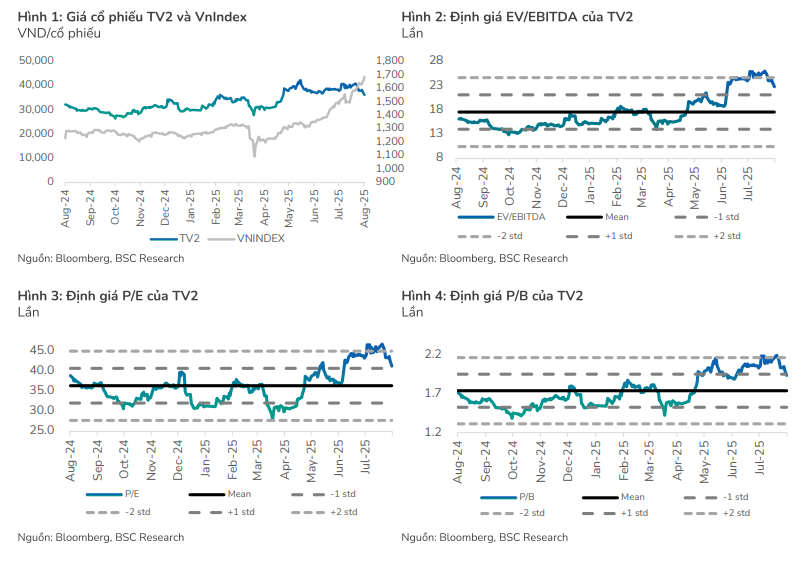 BSC (25.8.2025) đã nâng khuyến nghị đối với TV2 lên MUA, với giá mục tiêu 43,900 đồng/cổ phiếu, tương ứng tiềm năng tăng giá 28%. Quyết định này được đưa ra sau khi giá cổ phiếu TV2 đã điều chỉnh giảm 17% so với báo cáo gần nhất, tạo ra một cơ hội đầu tư hấp dẫn.
