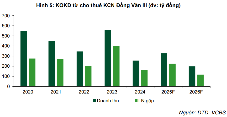 Khu công nghiệp Đồng Văn III (giai đoạn 1–2, 300 ha): đã lấp đầy phần lớn diện tích, còn khoảng 3 ha cần giải phóng mặt bằng; tỷ lệ lấp đầy dự kiến đạt 99% vào cuối 2025, mang về cho DTD hơn 500 tỷ đồng dòng tiền trong 2025–2026.
