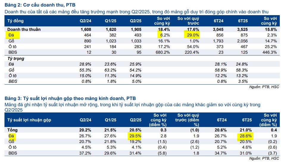 - Mảng đá: Tỷ suất lợi nhuận cải thiện mạnh mẽ, tăng từ 26.7% lên 29.5% nhờ quản lý chi phí hiệu quả.