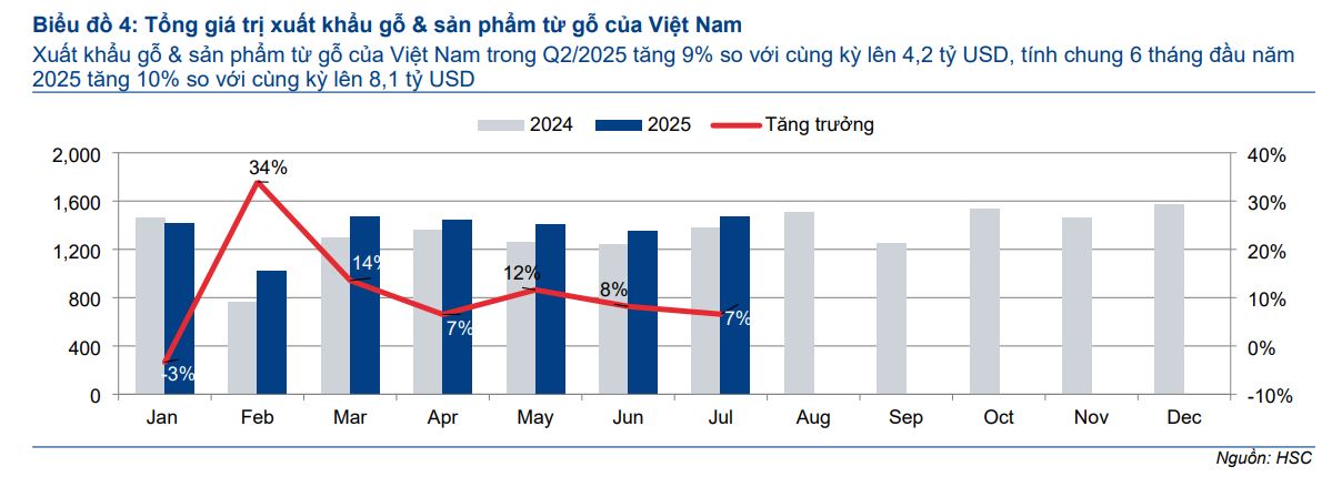 - Mảng gỗ: Doanh thu vững chắc, tăng 16% so với cùng kỳ.