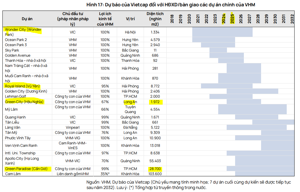 • Dự án Cam Lâm: Việc bổ sung dự án siêu lớn Cam Lâm (10,360 ha) vào mô hình định giá đã củng cố triển vọng tăng trưởng dài hạn của VHM.