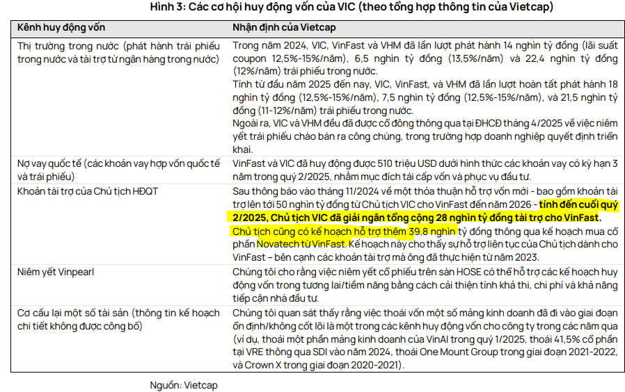 • Hỗ trợ tài chính mạnh mẽ: Chủ tịch HĐQT, ông Phạm Nhật Vượng, tiếp tục cam kết hỗ trợ vốn cho VinFast, bao gồm cả kế hoạch mua lại công ty con Novatech với giá 39,800 tỷ đồng. Điều này giúp giảm áp lực nợ vay ròng cho VIC.